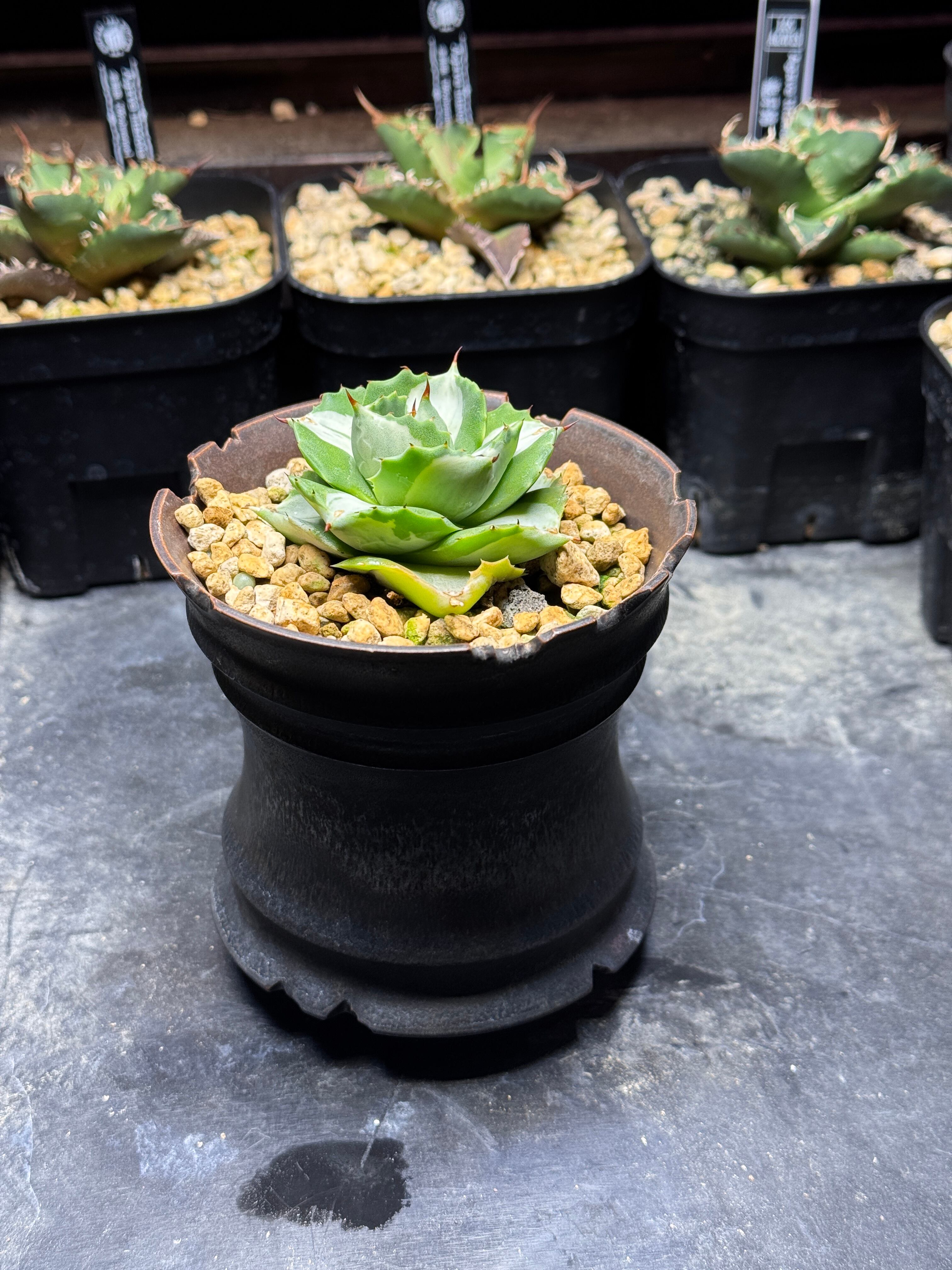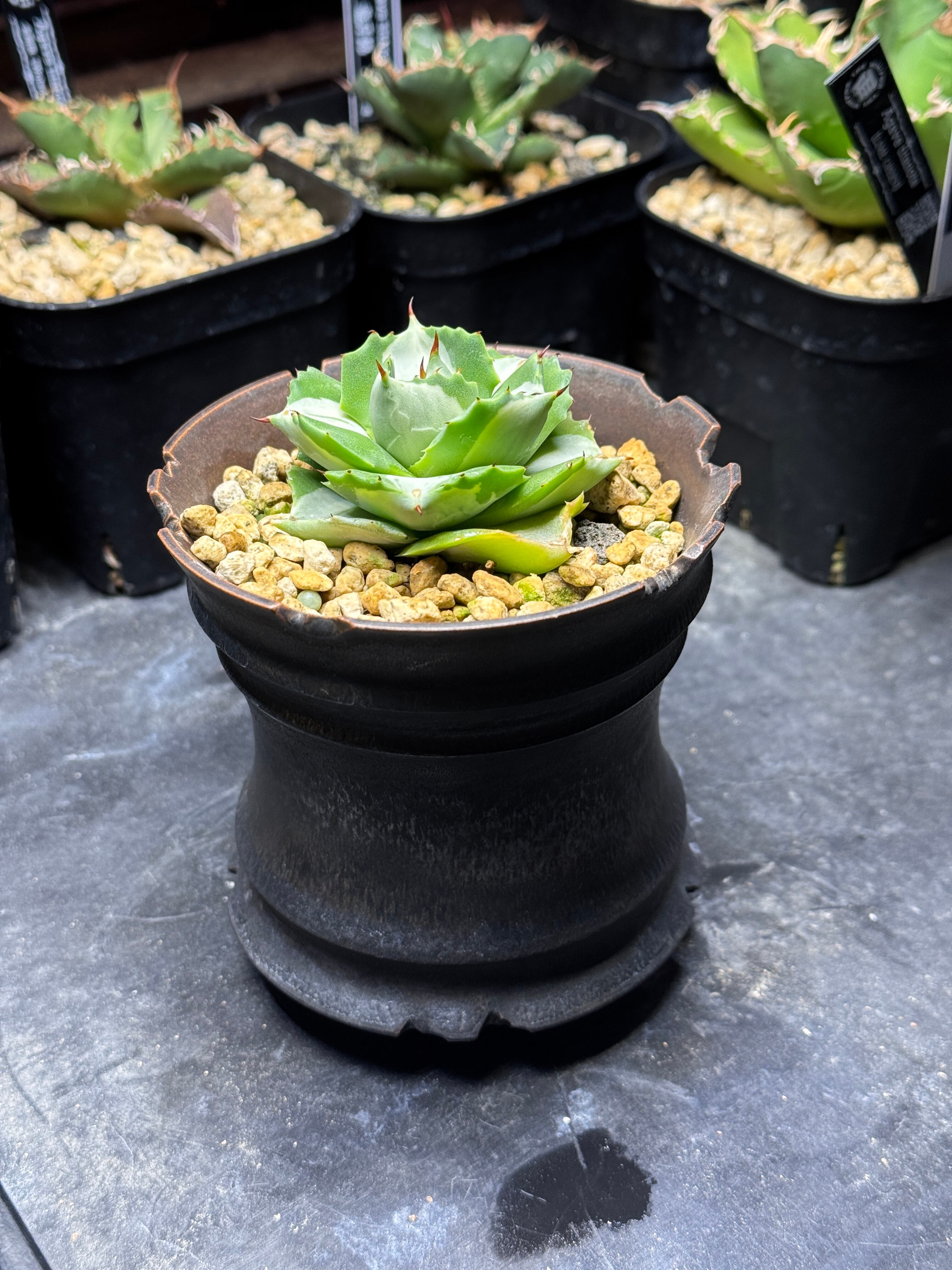 アガベ 王妃雷神錦 陶器鉢付き