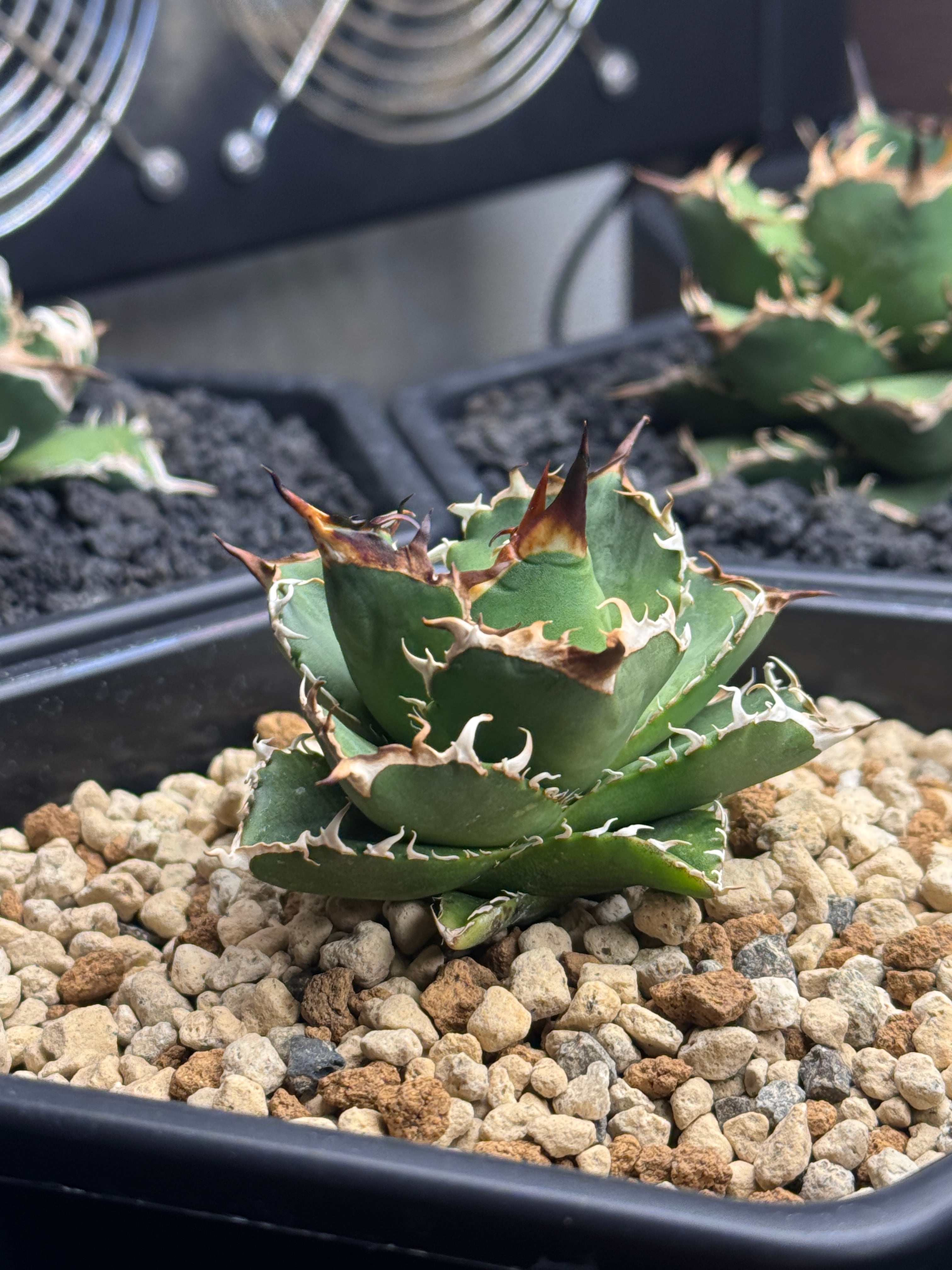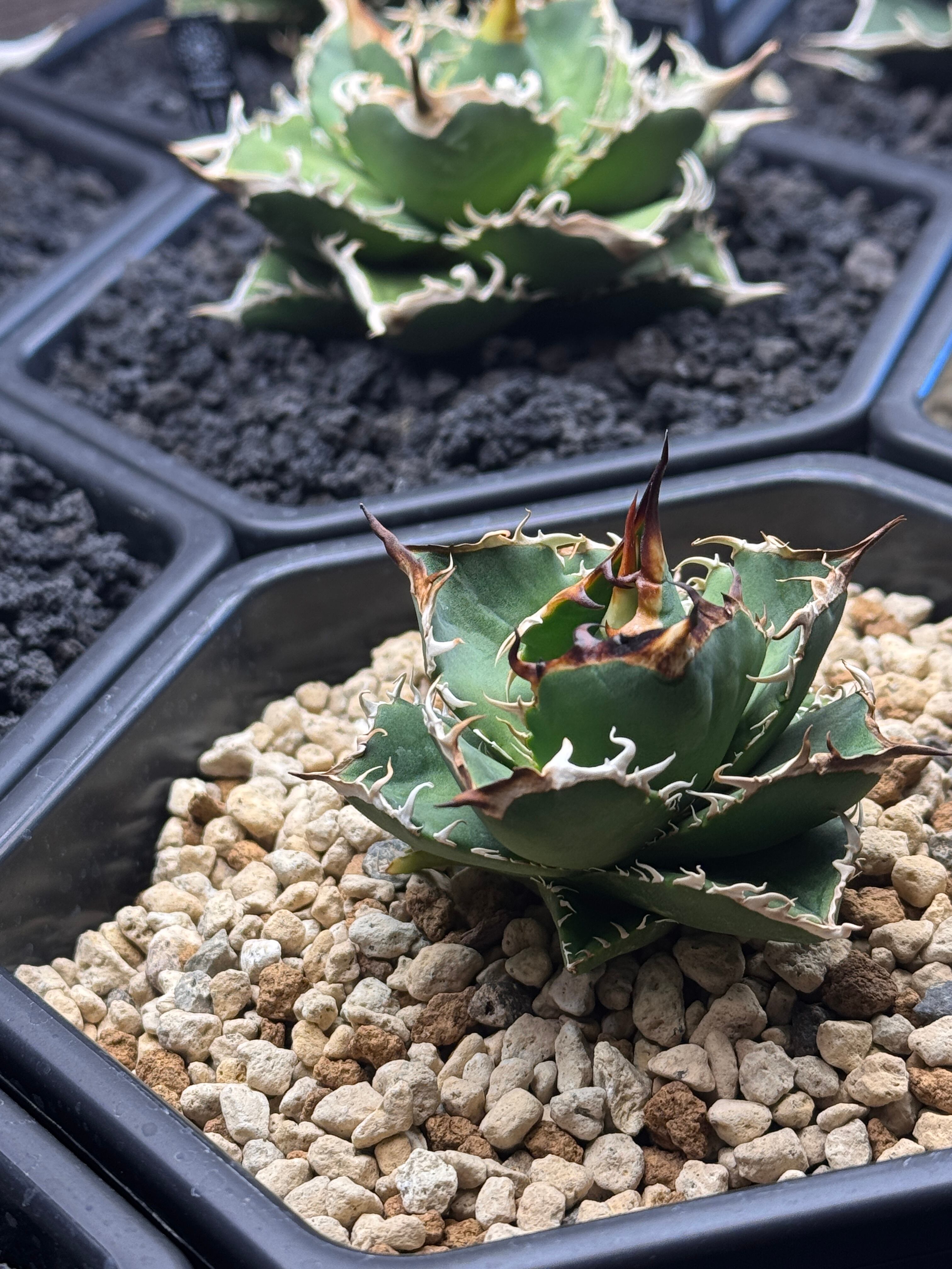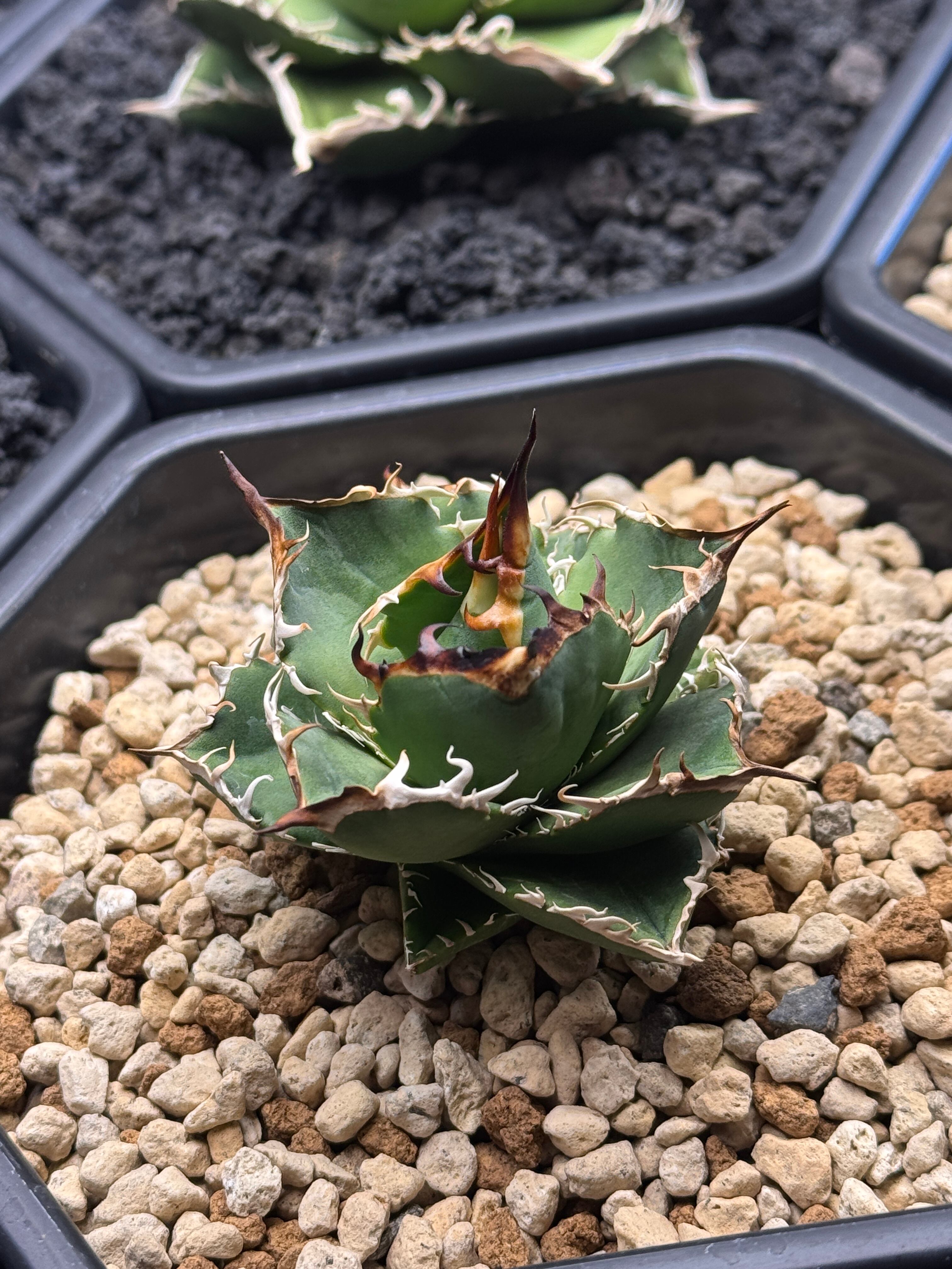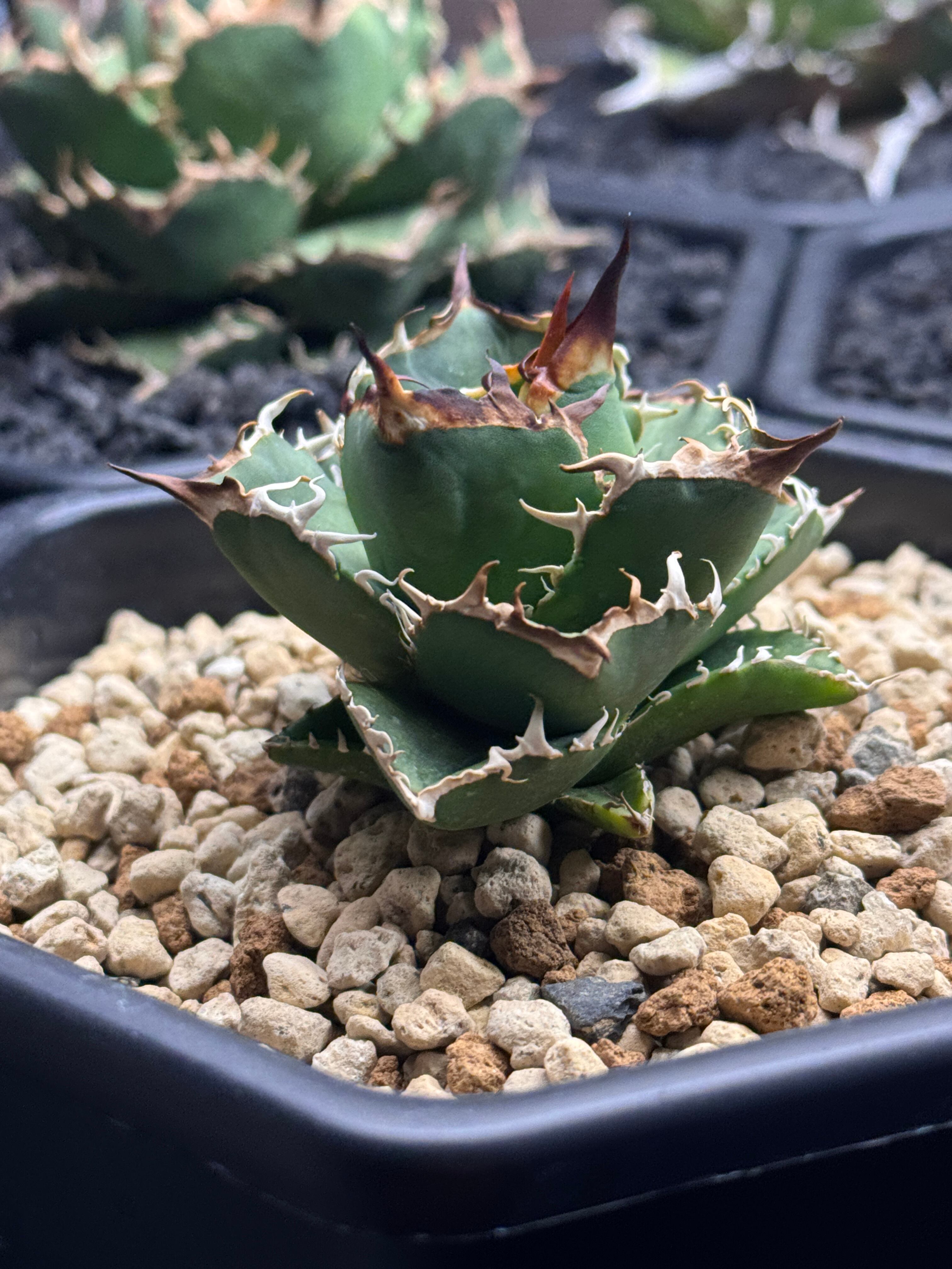 更に6-8枚目の画像の親株の進化から分かる通りメラメラとした炎の様な連なった鋸歯とトップスパインはウネウネしております。